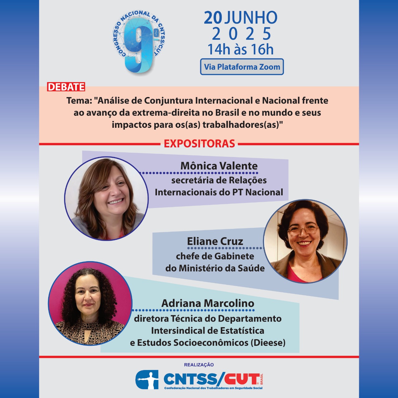 Release 9º Congresso da CNTSS/CUT discute extrema-direita em Conferência e Mesa de Debates