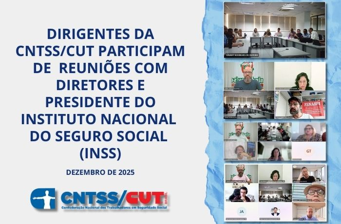 A defesa da pauta dos servidores e servidoras do Instituto Nacional do Seguro Social (INSS) foi intensificada nesta primeira quinzena de dezembro pela Confederação Nacional dos Trabalhadores em Seguridade Social (CNTSS/CUT), a partir de uma importante programação de reuniões com representantes do Instituto para cobrar avanços nos encaminhamentos pendentes. Foram mantidas conversações junto à Mesa Setorial, ao Comitê Permanente e com o presidente do Instituto, Gilberto Waller Júnior.